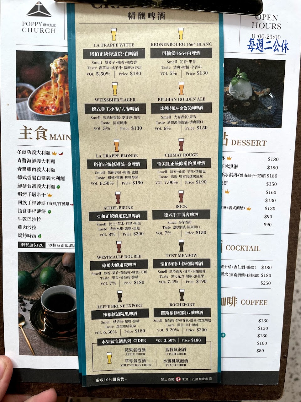 食物都很好吃,飲料,啤酒更勝一籌,薄餅超有特色,推。教堂很美。