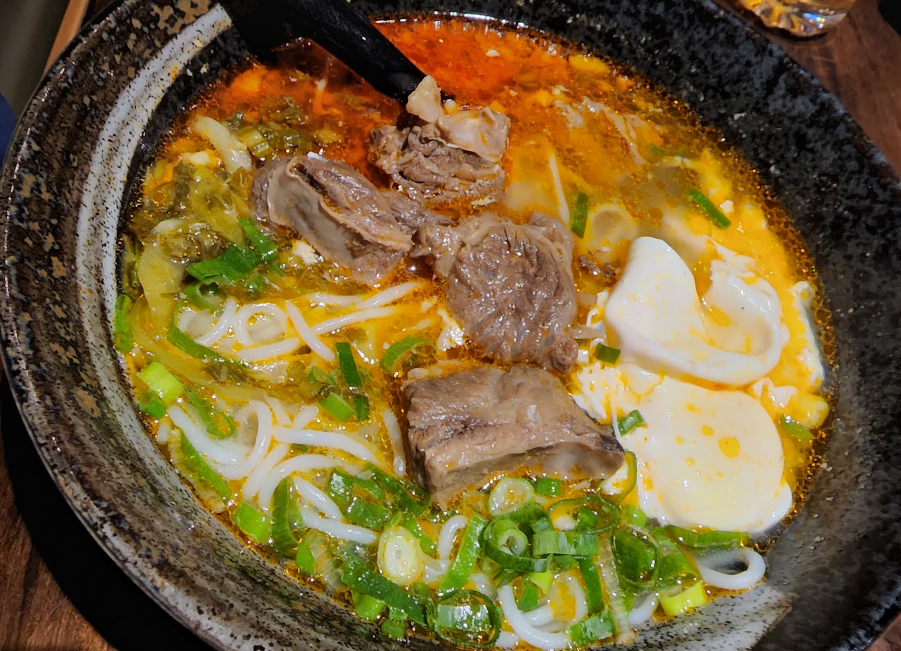 米干湯頭加了茄汁紹子醬與酸菜,拋棄了清澈版本,但又不夠紹子味,不知道想表達什麼?