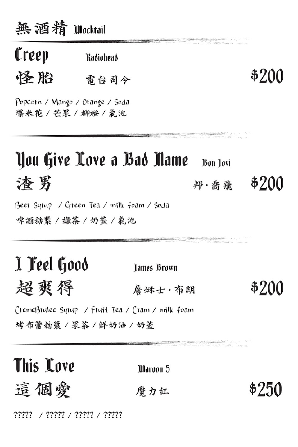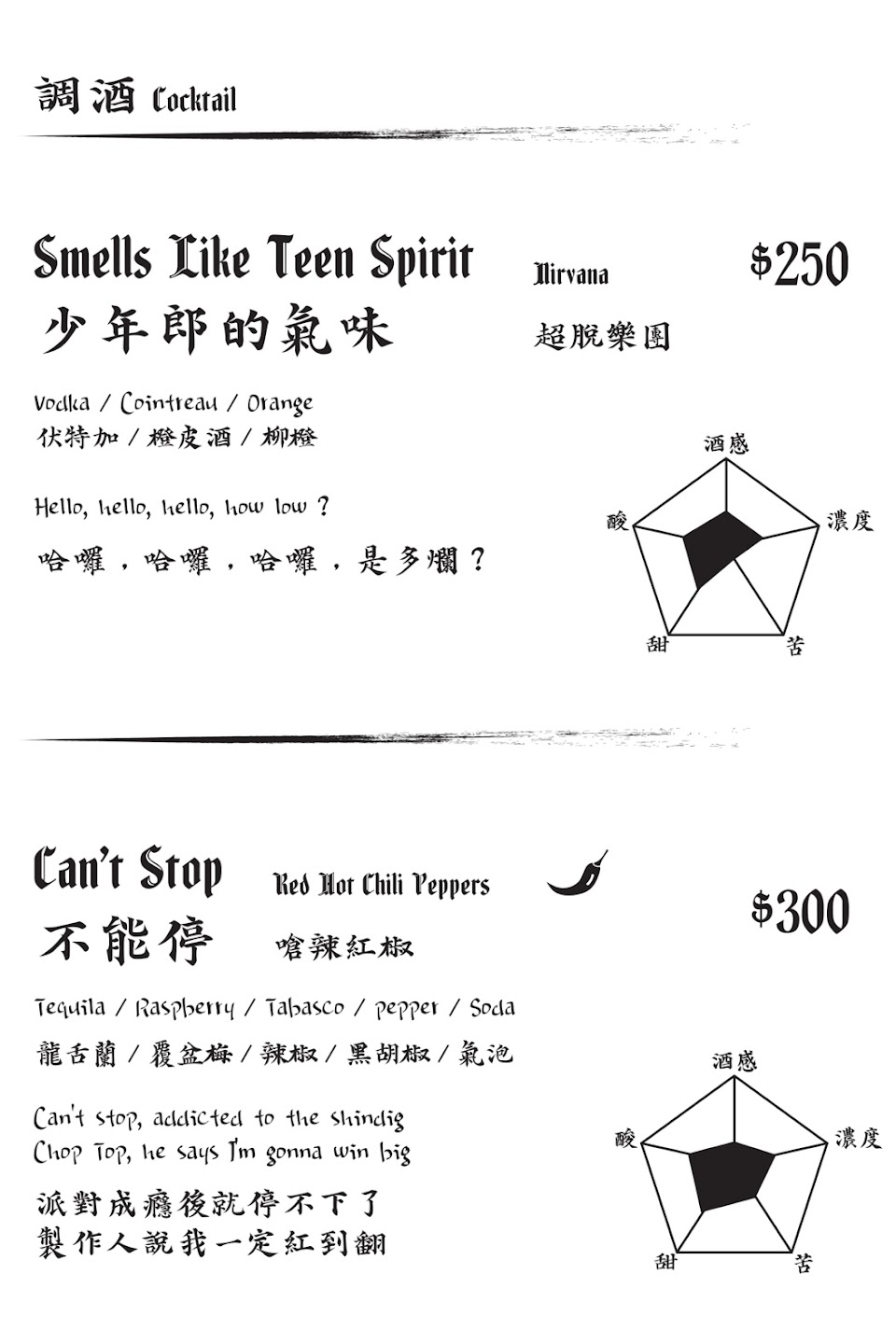用經典樂團曲目命名的調酒,味道比想象中驚艷 ,不定期會有表演在這展演