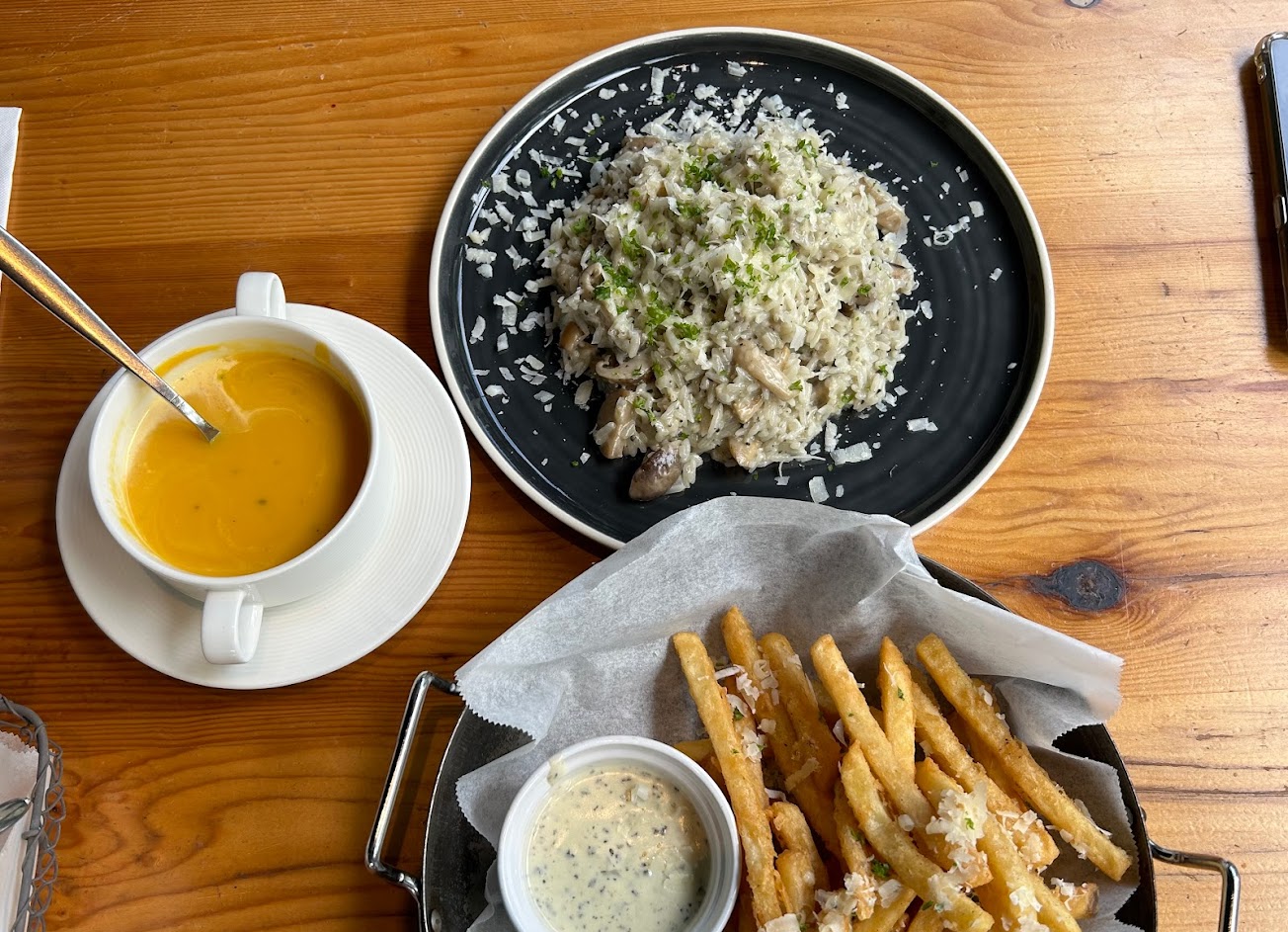 今天第一次來用餐,點了松露醬野菇燉飯,松露薯條一份,還有甜點跟兩杯咖啡,不錯吃。