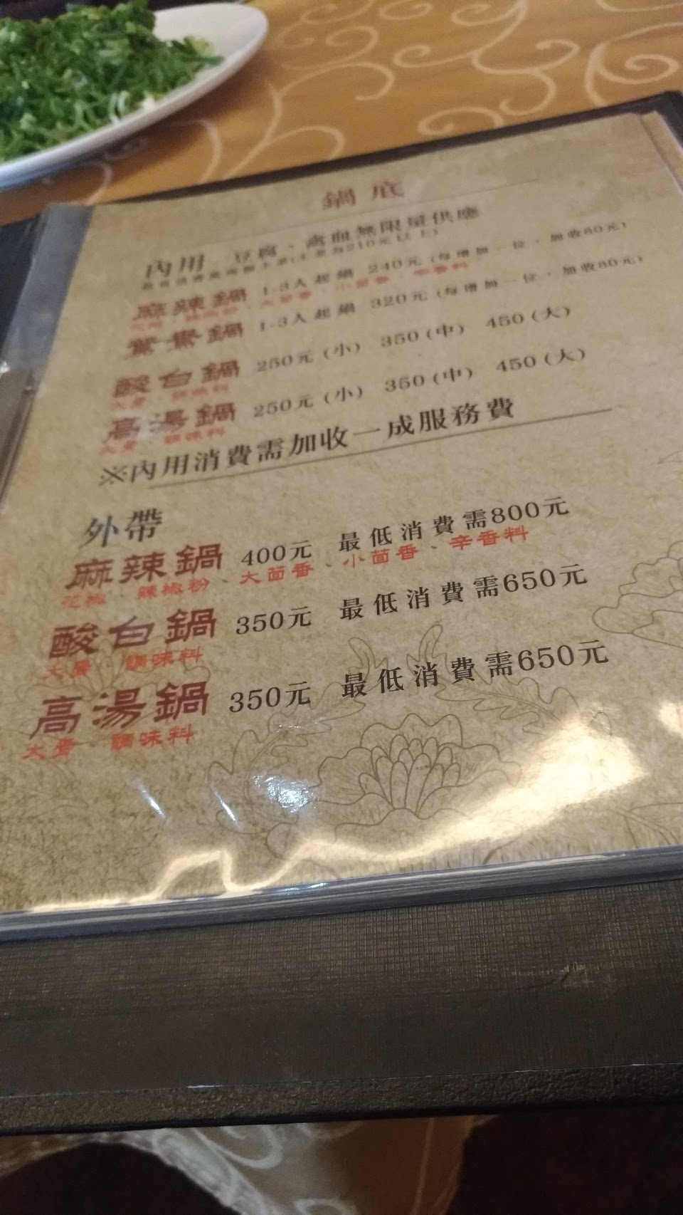鴛鴦鍋辣鍋又麻又辣,白鍋甜,喜歡麻辣鍋的可以試試。適合3人以上吃,cp值比較高,服務也不錯,不過沒有簽約的停車場,可以停對面醫院旁的停車場。