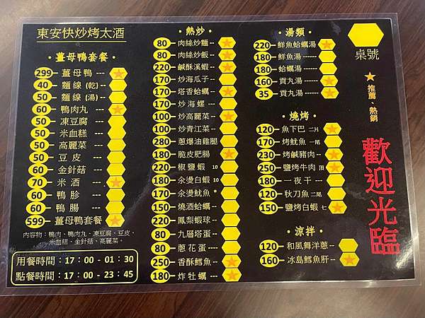 2024最新在地推薦餐廳的菜單_東安快炒薑母鴨/烤太酒燒烤的菜單、圖片