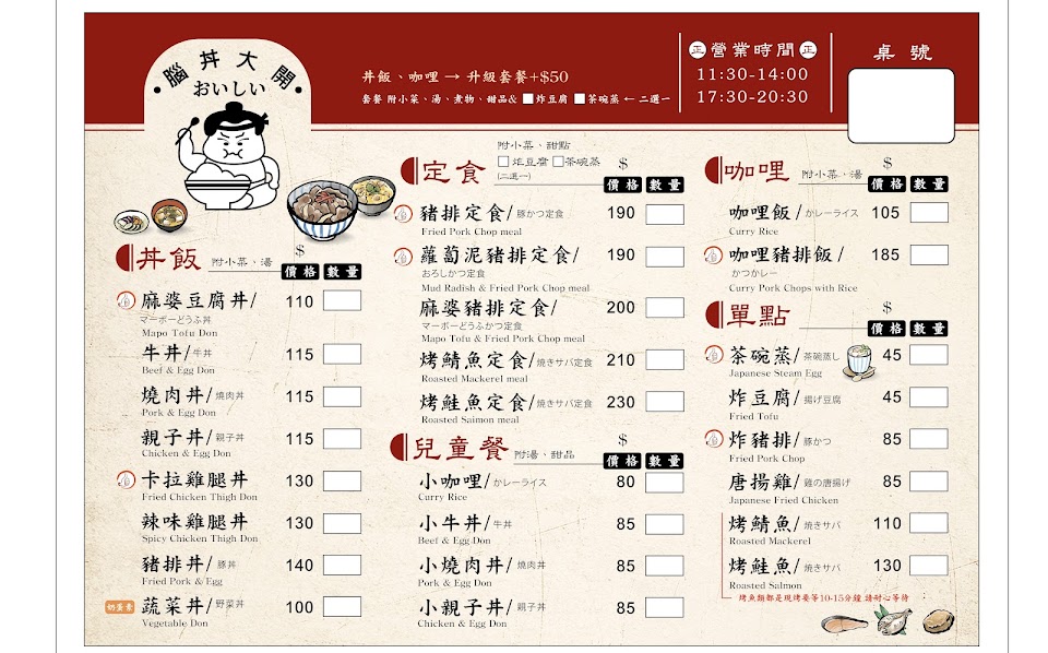 2024最新在地推薦餐廳的菜單_腦丼大開-日式定食-豬排定食-美食好吃單點的菜單、圖片