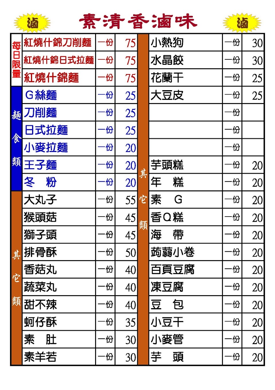 2024最新在地推薦餐廳的菜單_素清香 滷味的菜單、圖片