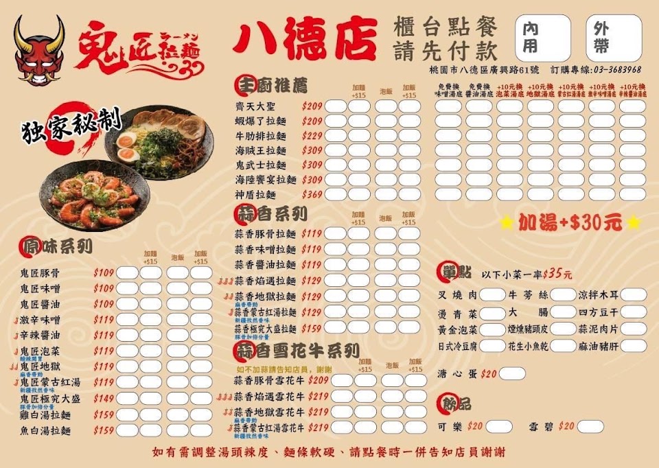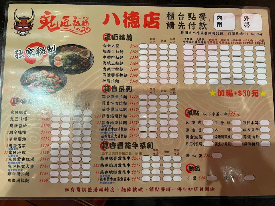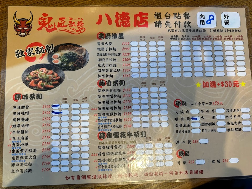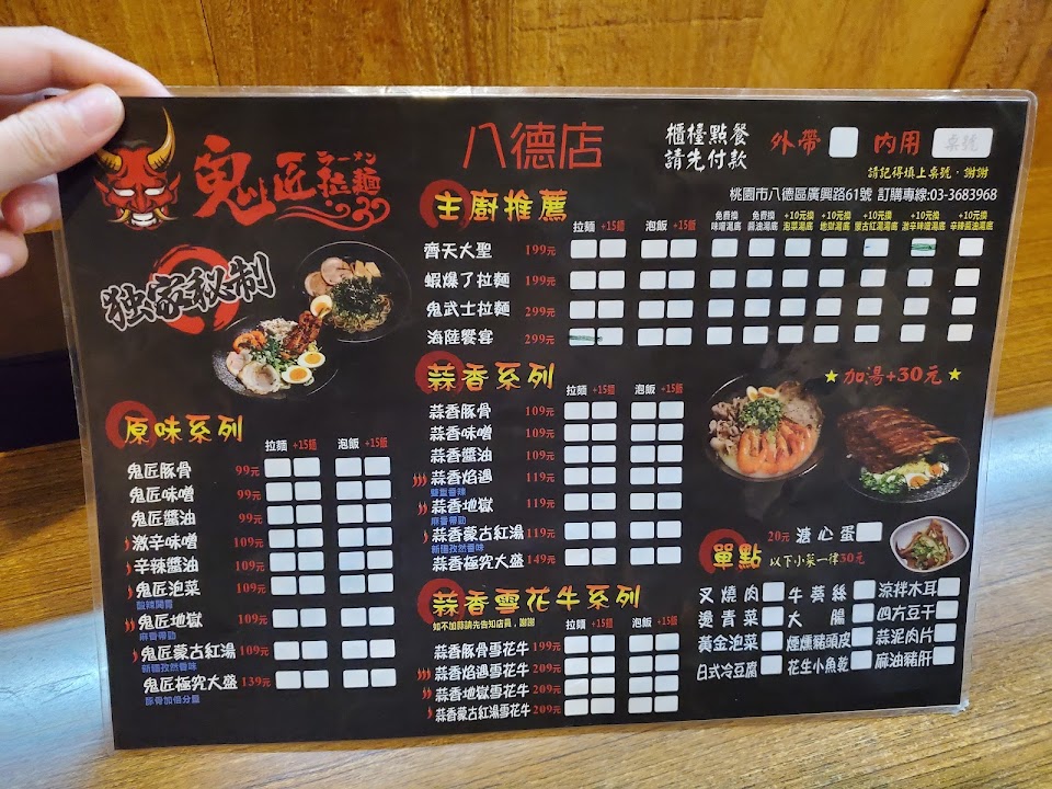 2024最新在地推薦餐廳的菜單_鬼匠拉麵-八德店的菜單、圖片