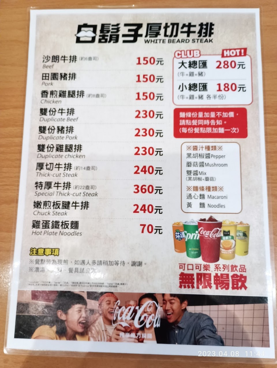 2024最新在地推薦餐廳的菜單_白鬍子厚切牛排(八德店)的菜單、圖片