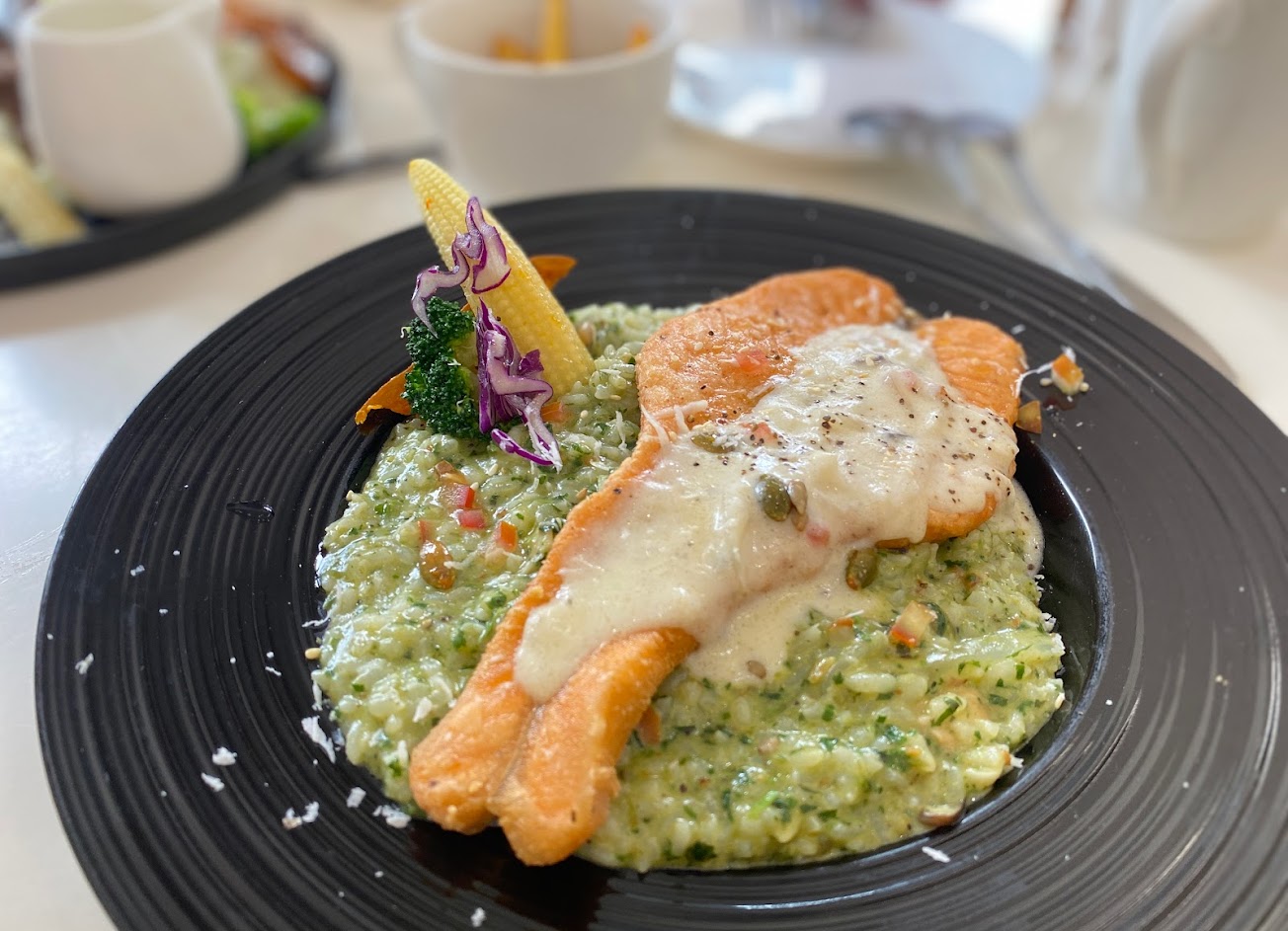 餐點選擇多元,口味也不錯,沙拉中搭配的蔬菜跟外面的餐廳不同,不想吃澱粉時的好選擇。青醬香氣十足,搭配鮭魚味道不錯