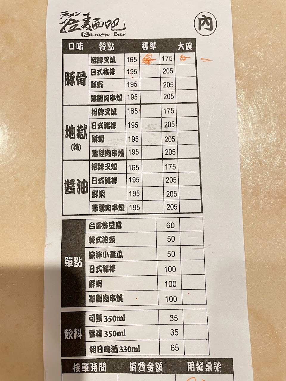 今天點餐豚骨叉燒和地獄豬排
