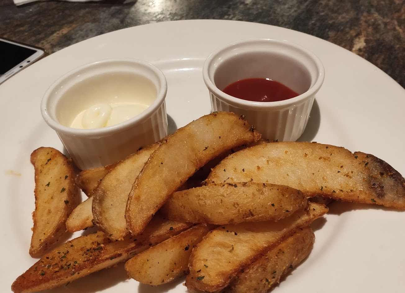 餐點的部分非常美味呢!出餐也不會等到不耐煩。前菜的蒜香烤雞肉服務生特別提醒說盤子很熱,不過雞球溫度偏溫,可以直接入口。花椰菜米起司焗烤鮭魚盅沒有對到我的口味,不過還是算好吃。
