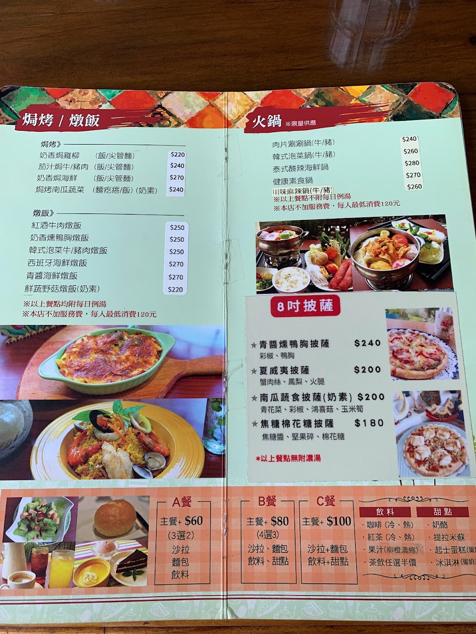 餐點很好吃,雖然是意式餐廳,但也有小火鍋,基本的焗烤料理跟燴飯都有,麵包蠻推的,整體的環境很明亮
