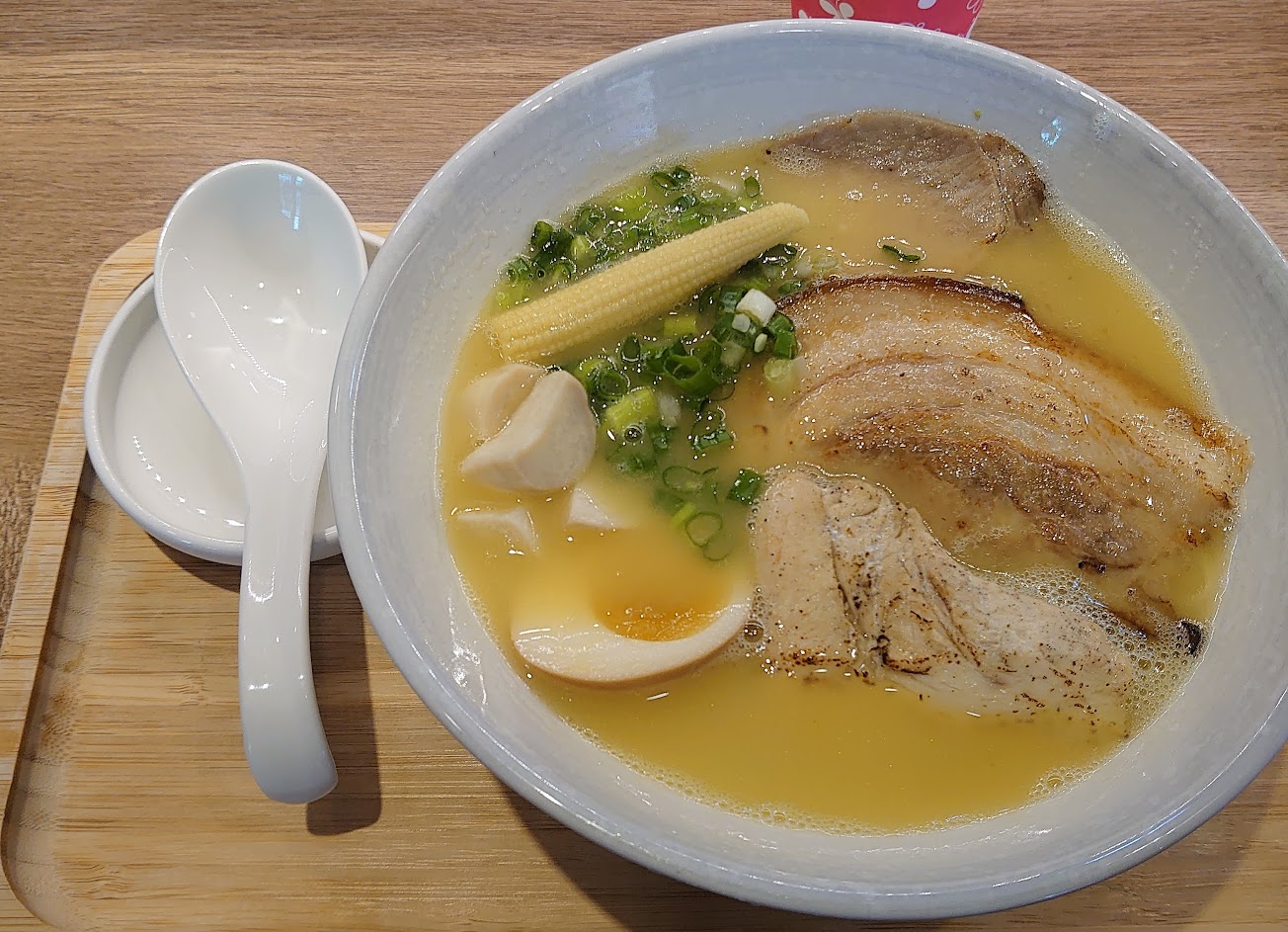 湯濃郁,麵條軟硬恰到好處真的好吃。少給的一顆星是因為唐揚雞,第一口咬下去,裡面都是油,有點恐怖。