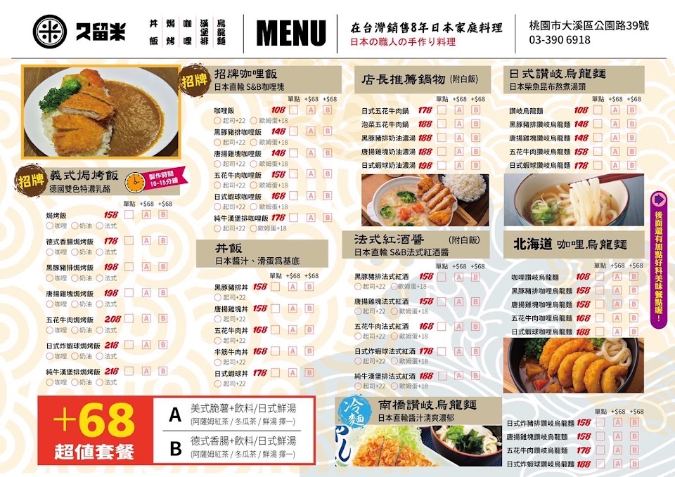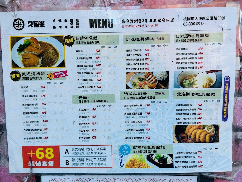 2024最新在地推薦餐廳的菜單_久留米日式咖哩 – 桃園 (日式精緻料理 必吃日料 咖哩飯 手作豬排 唐揚雞 巷弄美食 焗烤 牛肉漢堡排 家庭餐廳推薦 日本料理 )的菜單、圖片