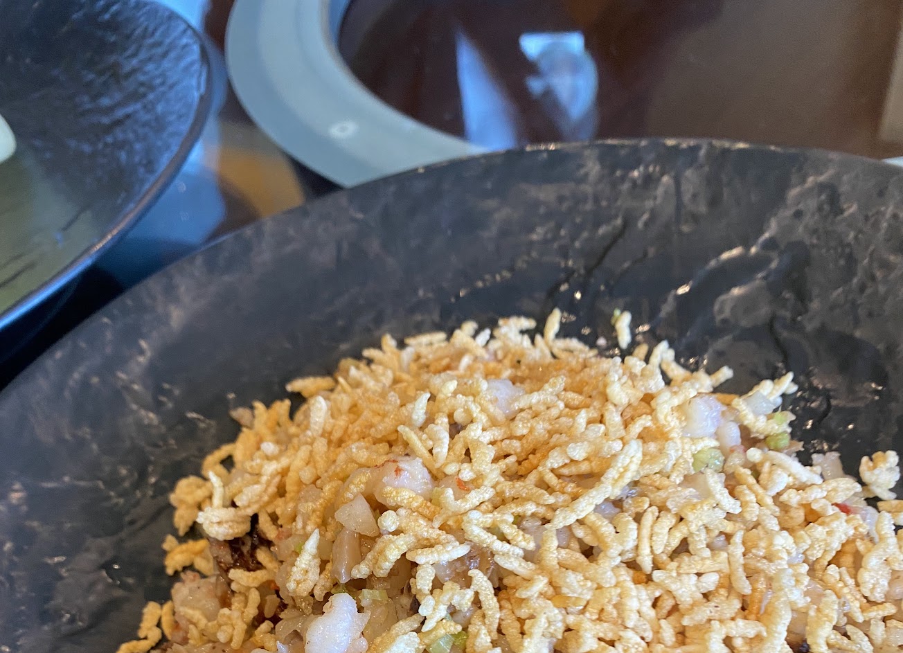 上菜順序,先上魚子麻婆豆腐,再上麻油雞飯,真的是考慮不周