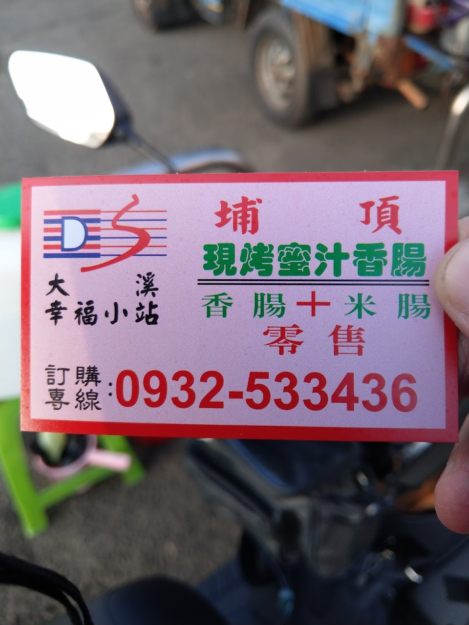 大溪埔頂幸福小站現烤蜜汁香腸這家每天只賣三小時的超人氣攤位,香腸香氣撲鼻,外層的皮烤的酥脆,裡面的湯汁超多會爆漿要小心吃,大腸包小腸提供的配料很豐富有添加甜辣醬/甜薑片/酸菜/菜舖,還有辣粉,愛吃辣可以選擇大辣,因為是使用朝天椒,後勁非常辣會很過癮。