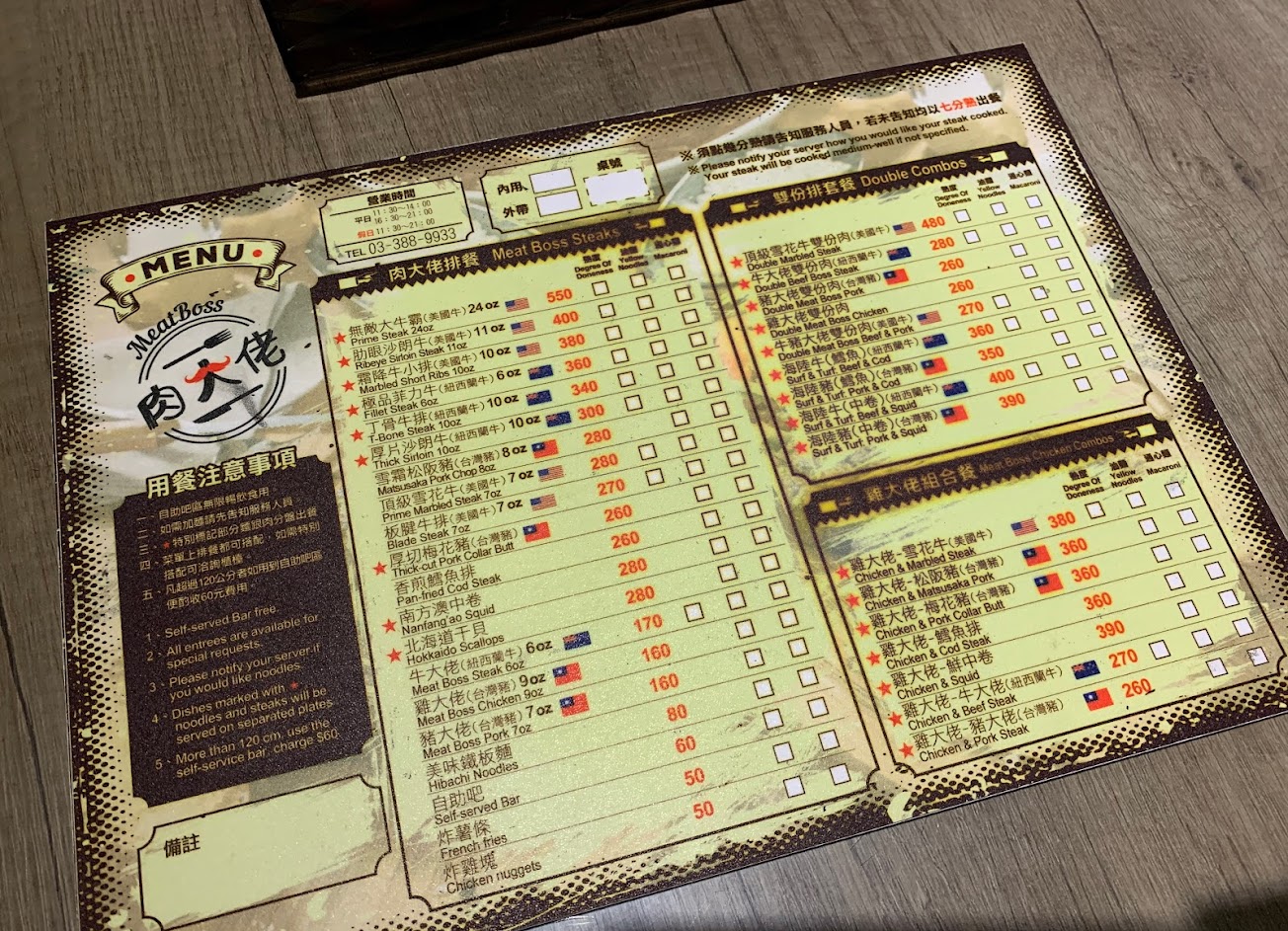 牛排店有牛蒡湯很特殊,醬料我認為需要改進,餐包是爆漿很讚,還有第一次看到麵跟肉分開送,雞排普普,雪花不錯,丁骨不錯超大塊,腓力ok,老闆服務不錯是香港的朋友