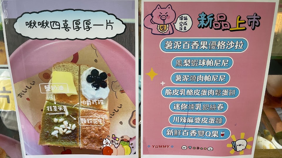 商品琳琅滿目,很多選項,但我點打拋豬蛋餅,我認為一般般,應該要點招牌脆皮乳酪蛋餅系列才對,但吐司還不錯,下次還能在來品嚐!