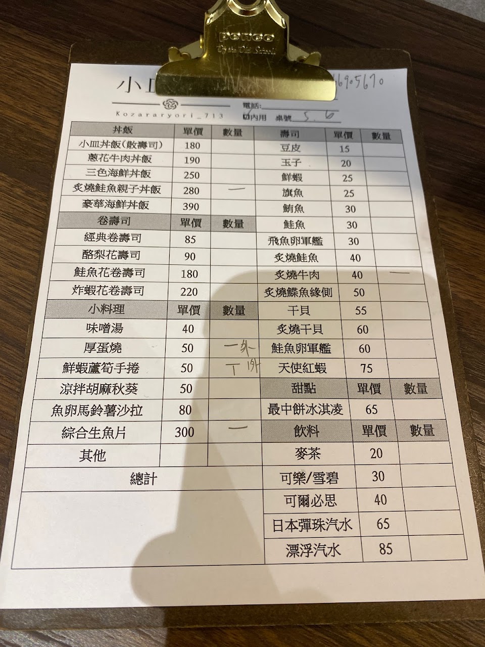 餐點:5