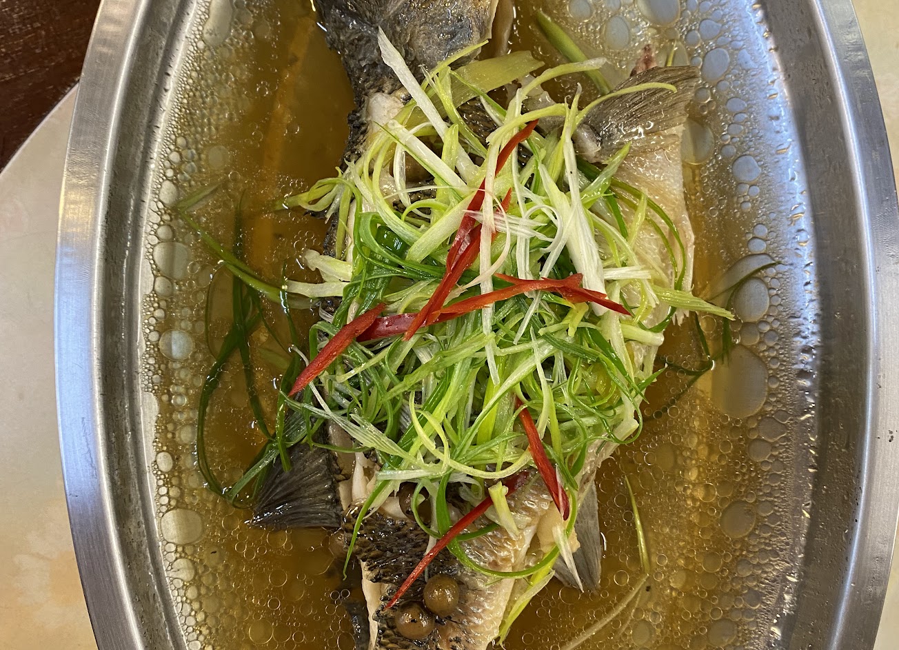 清蒸活鱸魚令人驚豔!清炒綠竹筍很甜!其他的菜因為太餓,來不及拍照⋯??