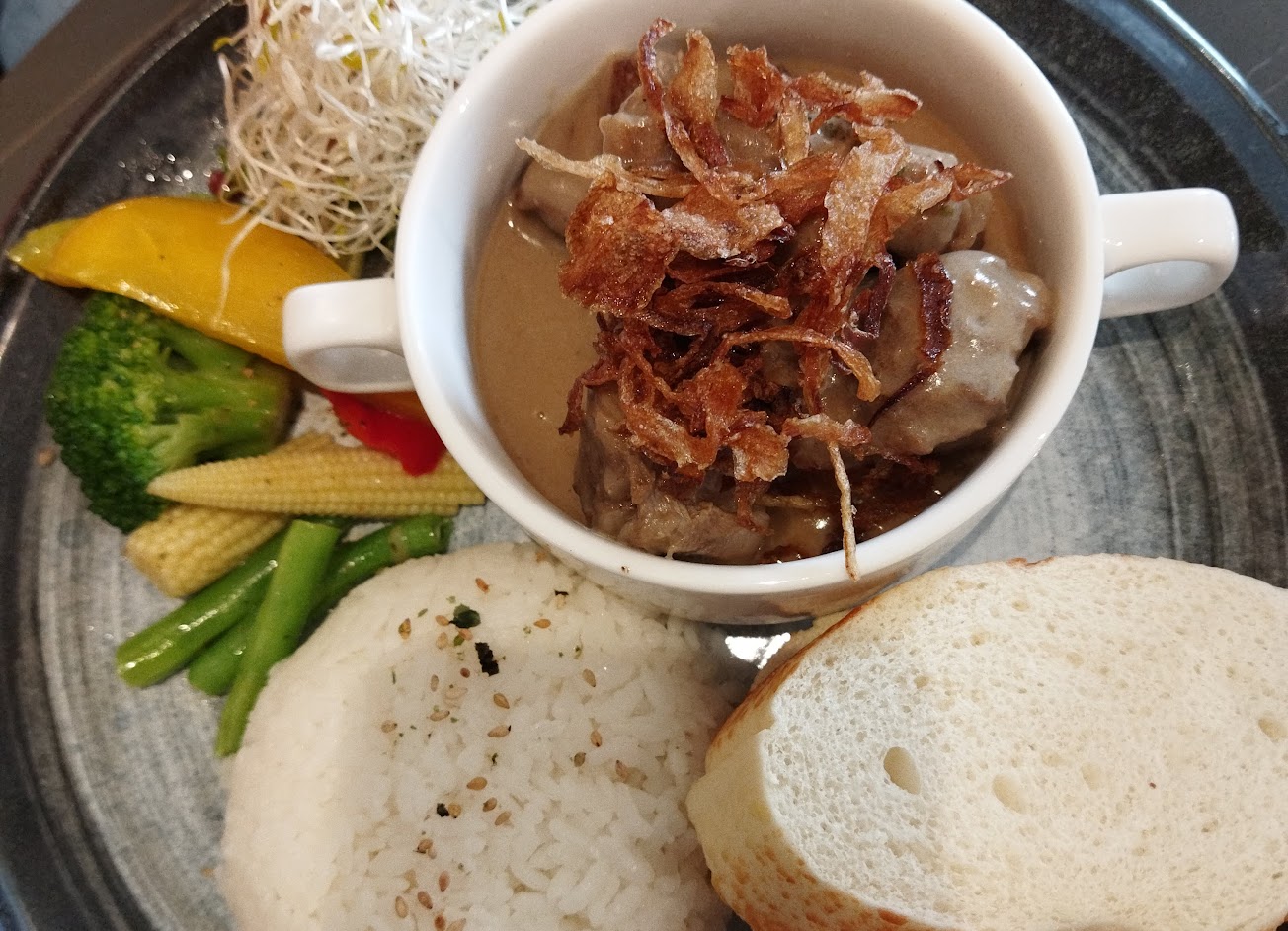 不算平價,但搭配活動套餐組合可以吃飽飽。服務很好,很親切。可以遠眺大溪美景的戶外用餐環境配上暖陽非常舒適。臨近老街,停車最近在區公所,出入都需要耐心排隊。