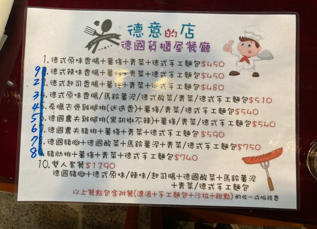 如果以為這裡有德國城堡、童話村、黑森林等裝飾或擺盤可以拍照打卡,請留步喔~這裡沒有喔!請把用餐機會留給專門來吃德國料理的人。