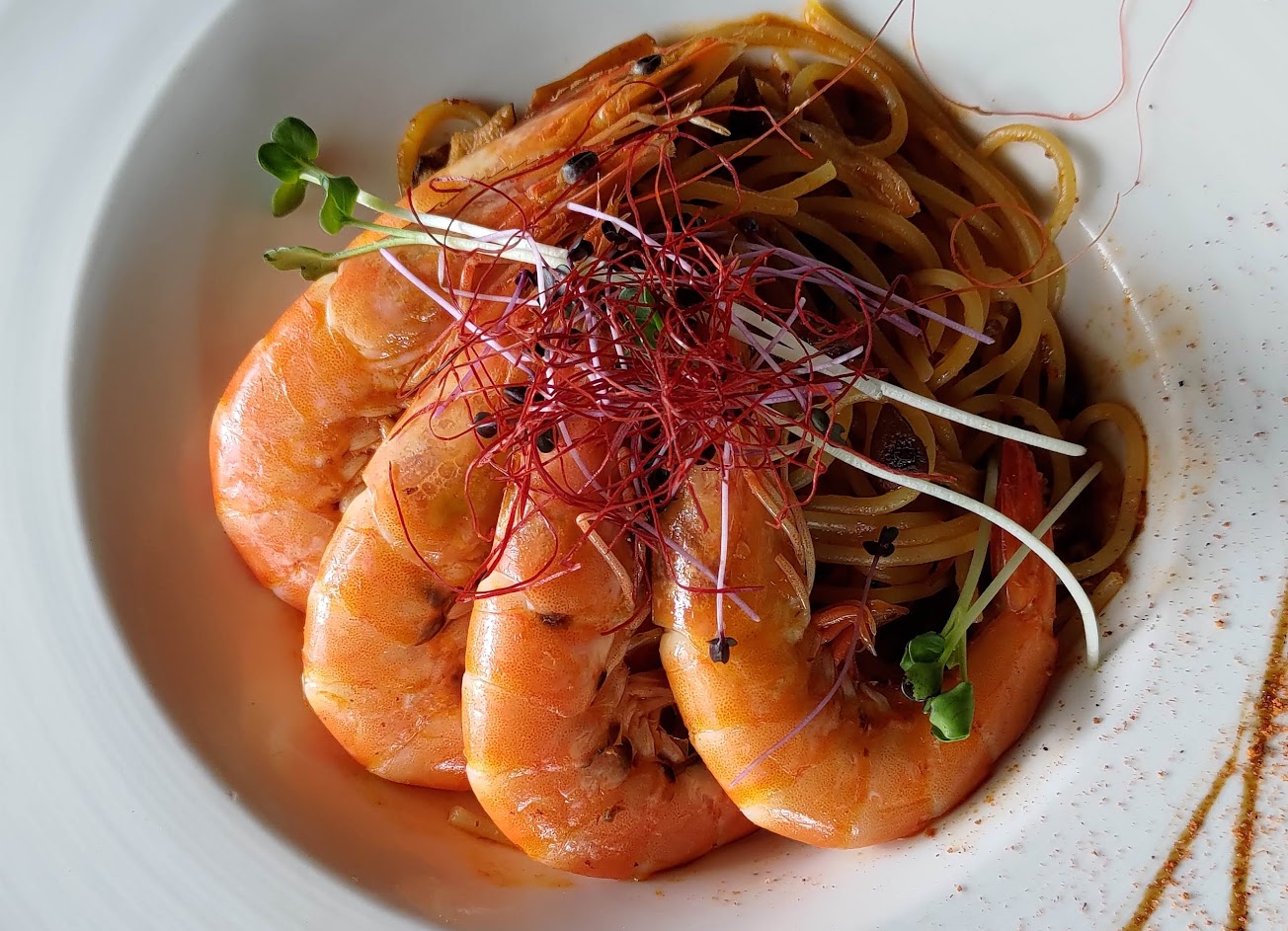 假日太多人、海鮮蝦義大利麵好吃