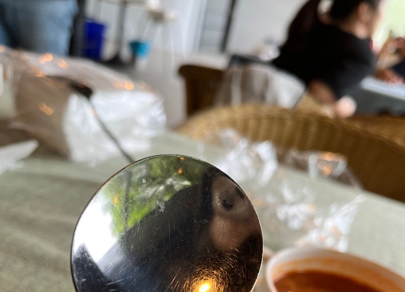 3. 最後一道濃湯的部分,餐具直至離開都沒有提供,我們只好放棄餐具並整碗端起完食…