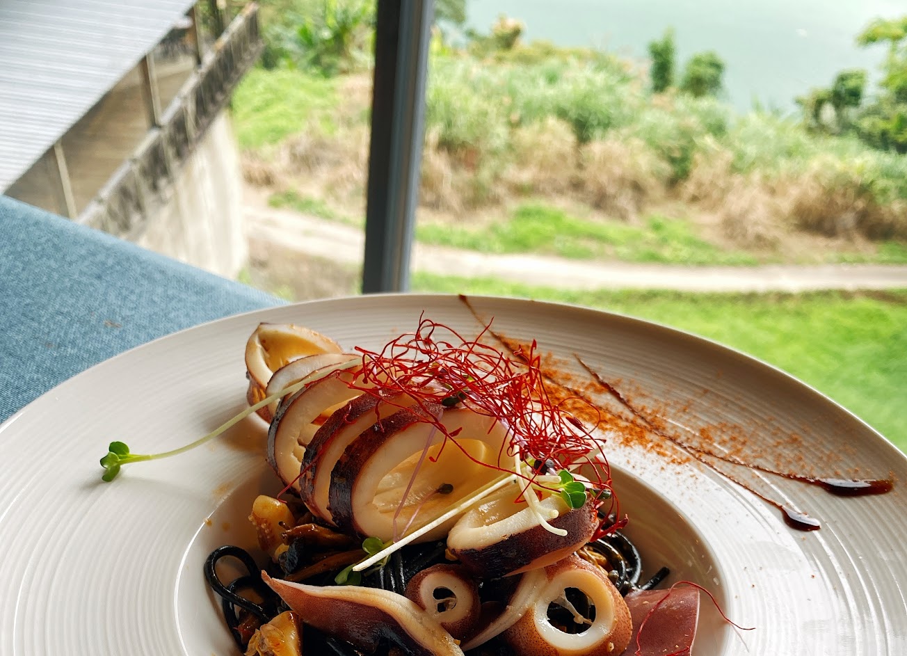 餐點真的很難吃,點了2份茄汁燉飯,裡面雖然放了高級的南瓜子和松籽,但是整份燉飯卻一點味道都沒有,番茄燉飯上面還放半熟蛋根本一點也不搭,就是把一些食材隨便混在一起,也不考慮食材整體味道是否美味,真是我吃過最難吃的燉飯,吃過一次不會想再吃第二次,一顆星只給景觀