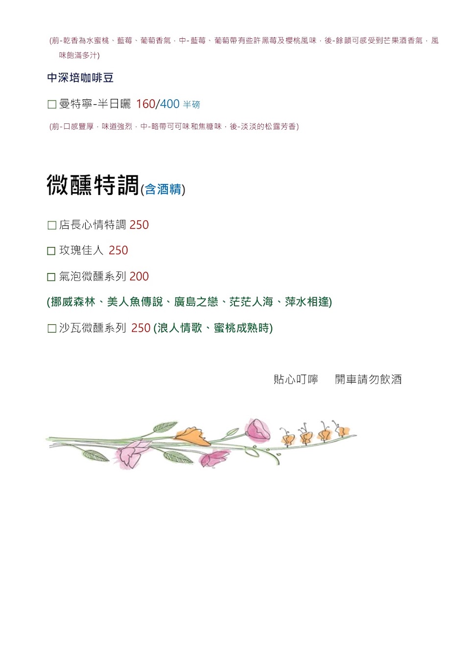 花錢受罪,我們住台北,那位壽星因你們網太慢所以休息一下我們準備要開車回台北,我也開過咖啡店現在也在大型聯鎖店上班,什麼是服務業你大概不知道,我們是客戶不是你的孩子要遵守你的規定,你土司裡面有蒼蠅我也懶得跟你說了,你這態度只能把自己的店做死最後關門大吉了,整家店最後剩兩個人跟兩只狗,你想趕客人也不是這種趕法,咖啡店是讓人放鬆休息的地方,你那不是咖啡店是讓人很痛苦的地方,我本來想買土司看有蒼蠅嚇到不敢買,請問你買嗎?你就算是免費我也不想去因你這觀念有問題,沒吃出病也氣出病了,真等到關門再來後悔吧,想氣出病的趕快去但是得不到賠償的,你當然不會氣出病,我是指去你店裡消費的客人,因小眯一下也不行的,東西難吃,規定一堆,價格也貴,請問有什么可以讓別人想去呢? 餐點類型 其他 平均每人消費金額 $1-200 餐點:1 服務:1 氣氛:1