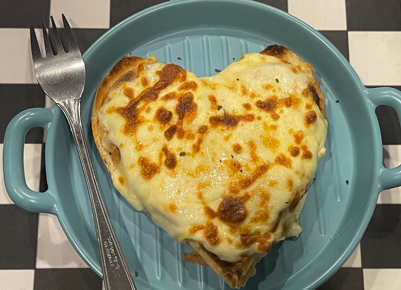 是愛心形狀耶❤️起司控 ?️可以要點♡一定要趁熱吃,浮誇起司超牽絲!!!三明治口感很Q?內餡鋪滿雞肉很香?且不乾柴