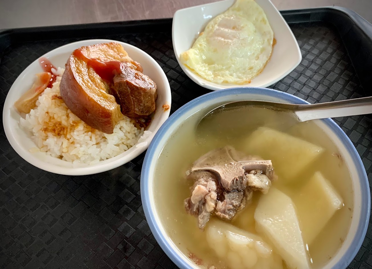 爌肉飯(三層肉 腳庫筋) 配菜和湯都好吃