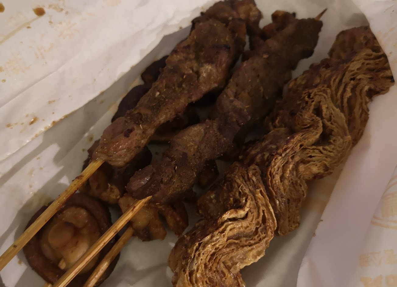 肥腸、米血都很好吃,甜不辣也不錯,但不是烤的脆脆的那一種。 羊肉有點腥味,雞皮普通。 價格便宜,還會再去吃