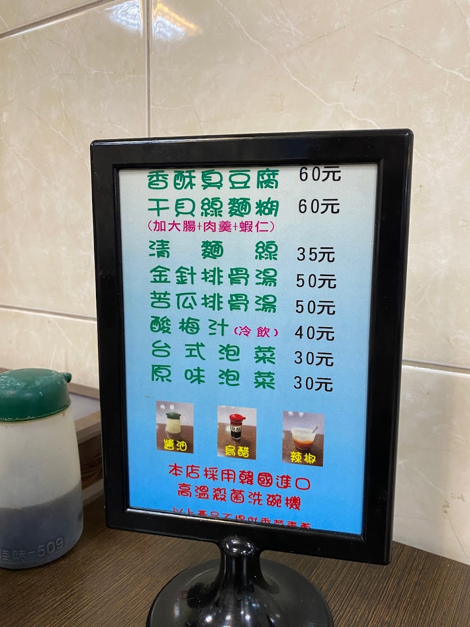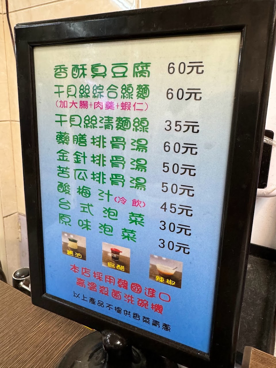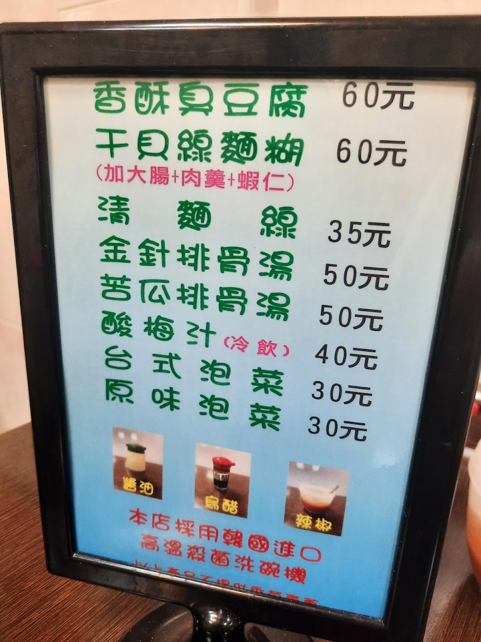 整體普通,泡菜不合我的胃口,臭豆腐外酥內嫩不錯,清麵線勾芡太濃我個人不太喜歡。