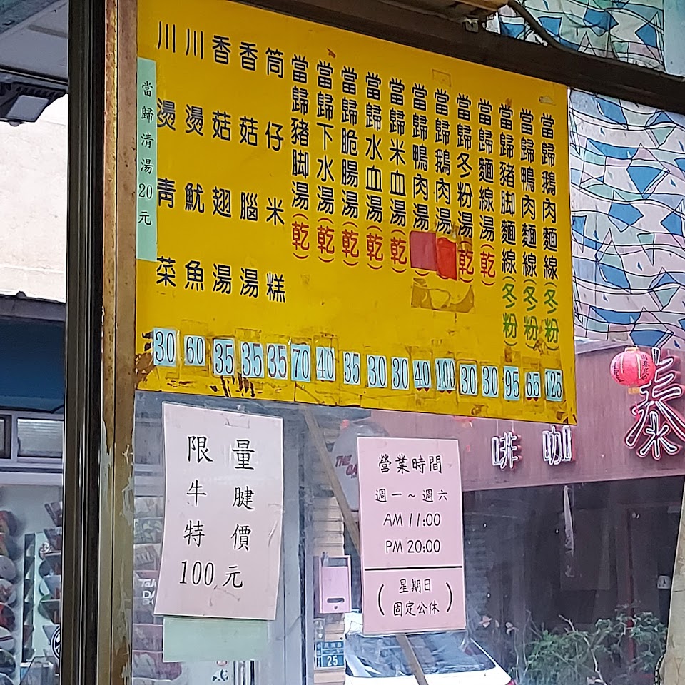 當歸豬腳麵線, 當歸米血, 脆腸 乾, 香菇腦湯, 當歸豬腳湯, 當歸鵝肉麵線
