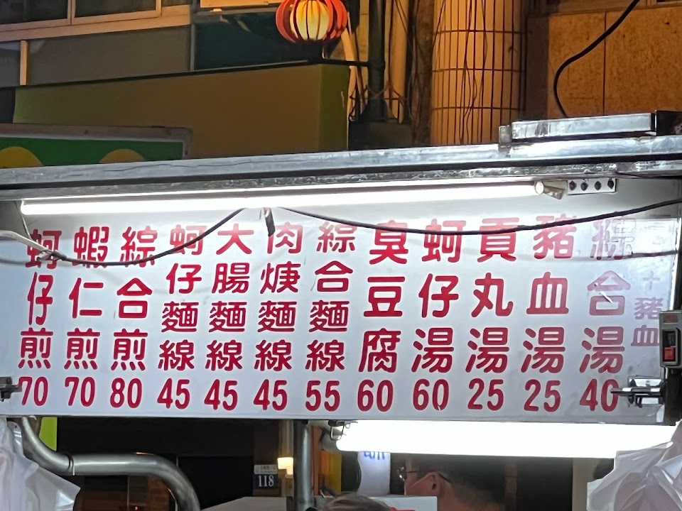 吃蚵仔煎和臭豆腐。要排隊等桌位,蚵仔煎的沾醬偏甜,臭豆腐配菜有泡菜跟小黃瓜,泡菜不冰偏酸,但臭豆腐本身是好吃的。內部服務人員有點粗魯,在排隊時,還硬要撞過來,從中間穿過忙外場,一度懷疑是要把我撞到美國去嗎