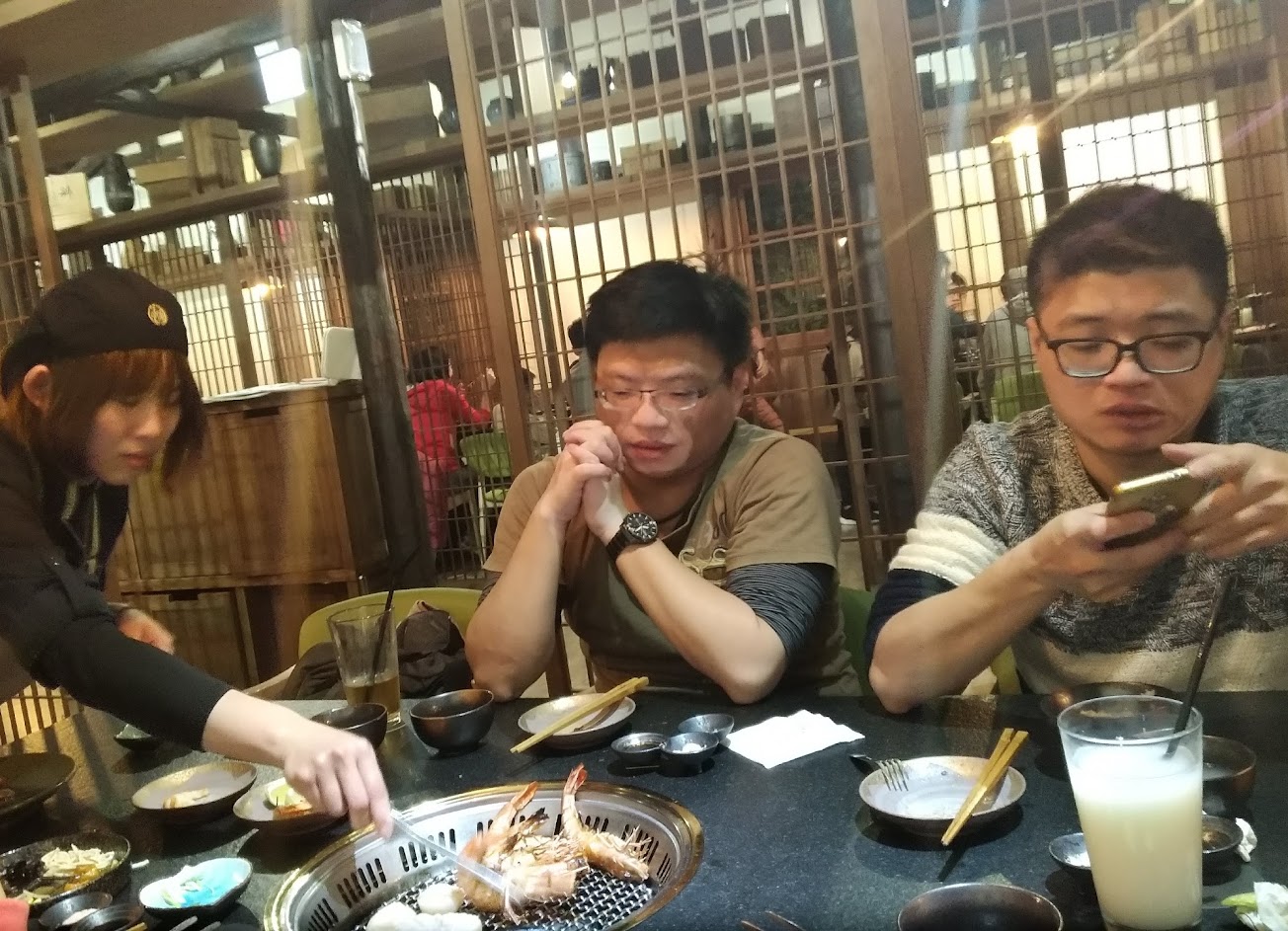這次吃的是1680的套餐 食材新鮮份量充足 每桌會先供應熱湯和小菜 烤蝦子時服務員動作熟練 現場還有一個供拍照的和室 除了燒肉外可以到處走走
