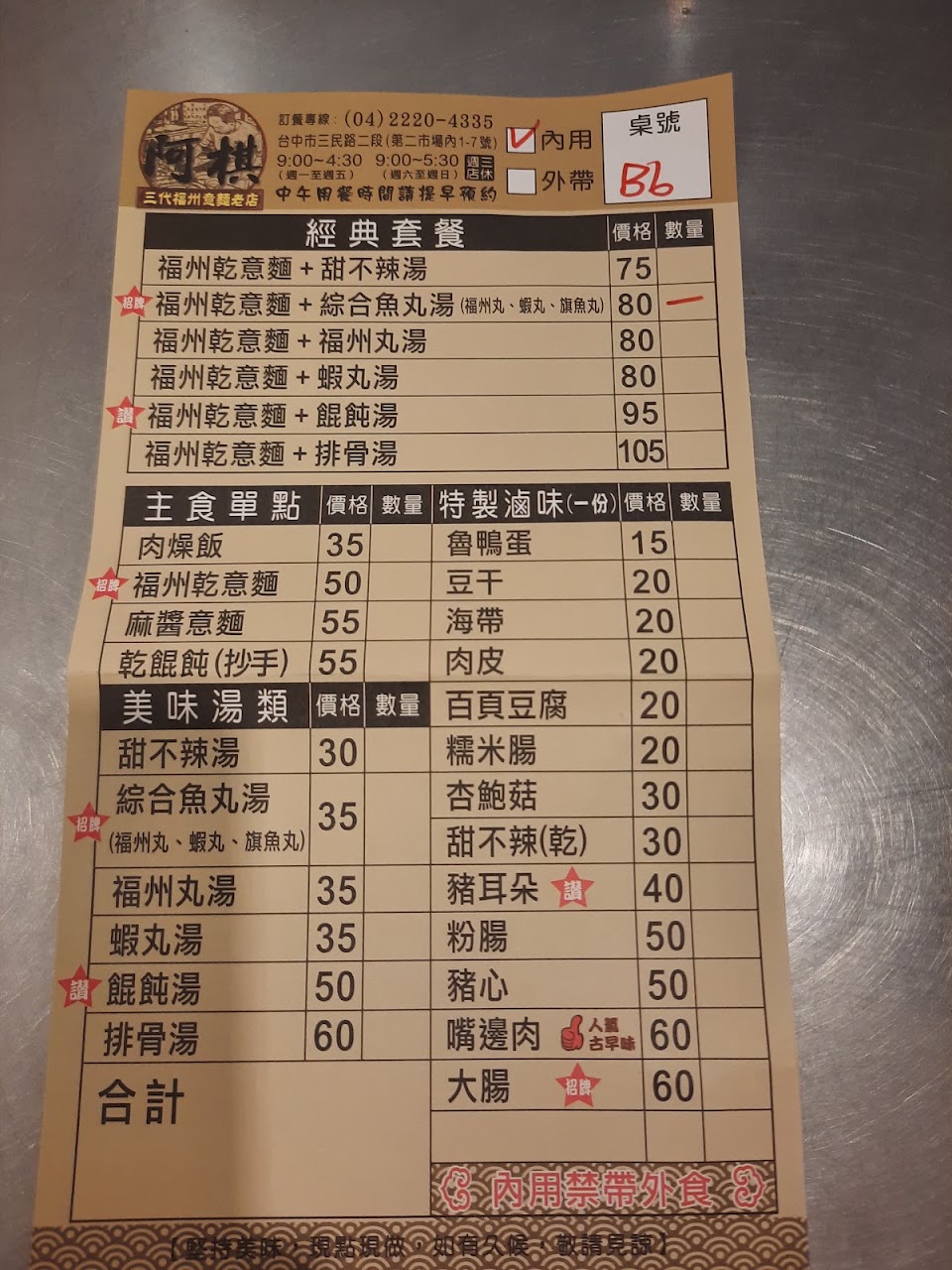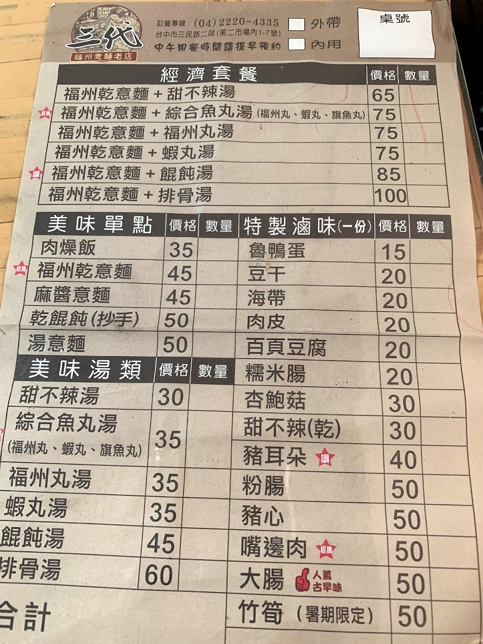 2024最新在地推薦餐廳的菜單_阿棋 三代福州意麵老店-台中第二市場在地人氣小吃的菜單、圖片