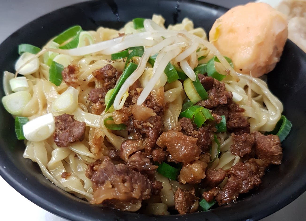 老店但廣告打好大,也太多藝人介紹過了吧!意麵加肉燥,味道&香氣十足,福州丸內餡飽滿好吃,可惜湯頭太油又加油葱和胡椒太多…