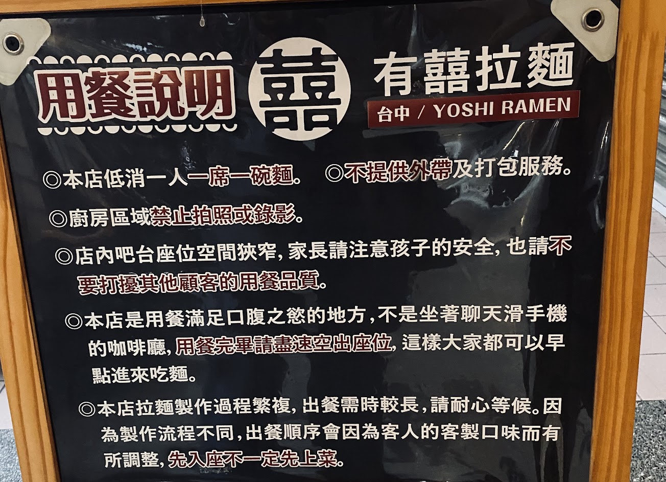 但可能生意真得太好了 有一種等待的壓力 且店外有很大張的標語 也增添了緊張感