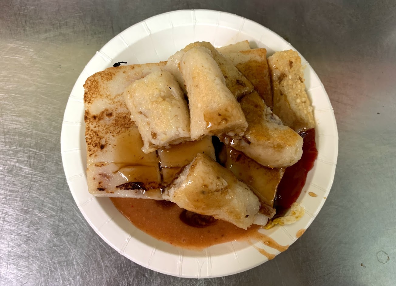 三樣比外面的好吃 蘿蔔糕有芋頭味 麻將麵也很濃郁 只是吃到後來會膩