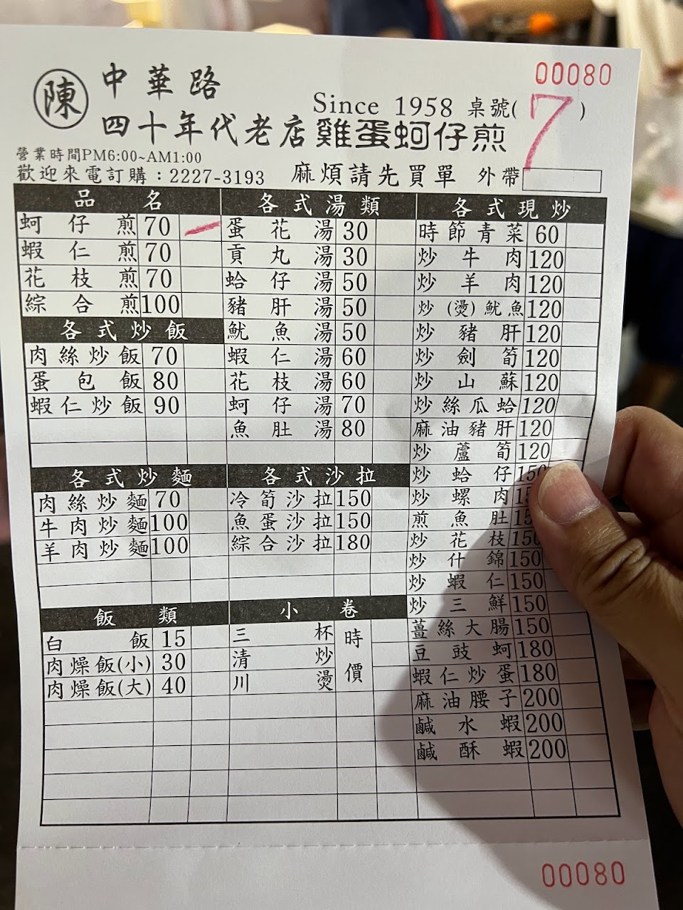 這間中華路必吃,蚵仔煎,蛋包飯,肉絲炒飯,蛋花湯,都是每次必點的,大家可以試試看,不過人多要等喔!