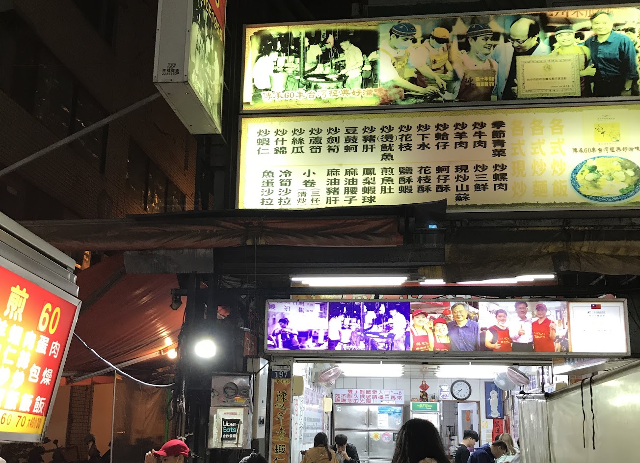 蚵仔煎,蚵仔營養不良,超小超少,一份60,吃一次就好,賣40年了可能現在蚵仔比較貴,憑著老名聲能賺多少是多少 。