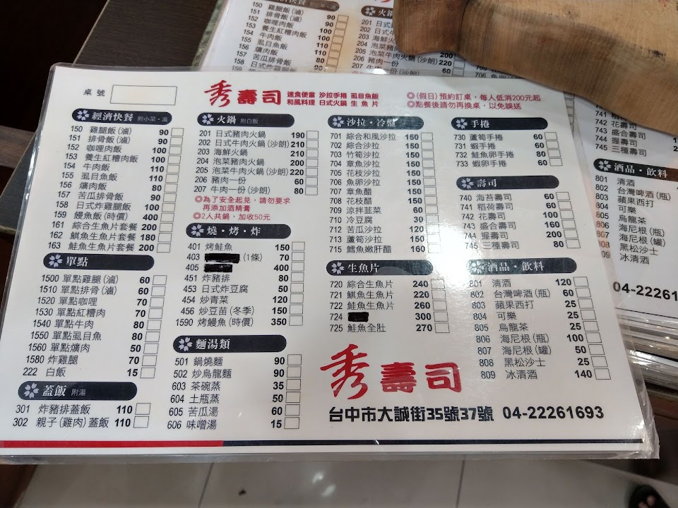 2024最新在地推薦餐廳的菜單_秀壽司中日料理的菜單、圖片