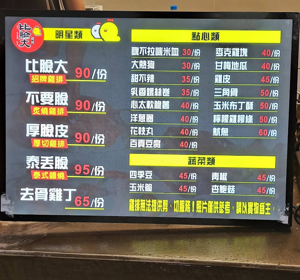 2024最新在地推薦餐廳的菜單_比臉大雞排 台中日新店的菜單、圖片
