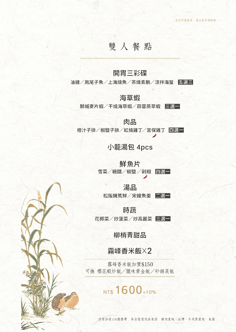 建議的餐點