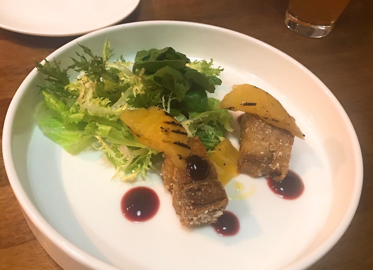 只是簡單點了海鮮沙拉、炸雞翅跟鴨胸肉,海鮮沙拉讓人讚不絕口,新鮮,而且肉質煮得恰到好處,微辣口味不停刺激味蕾與食慾。鴨胸肉很有特色,屬於軟嫩的口感,配菜的地瓜非常強大,外脆內軟。炸雞翅必點,多汁鮮嫩,沾醬也美味。
