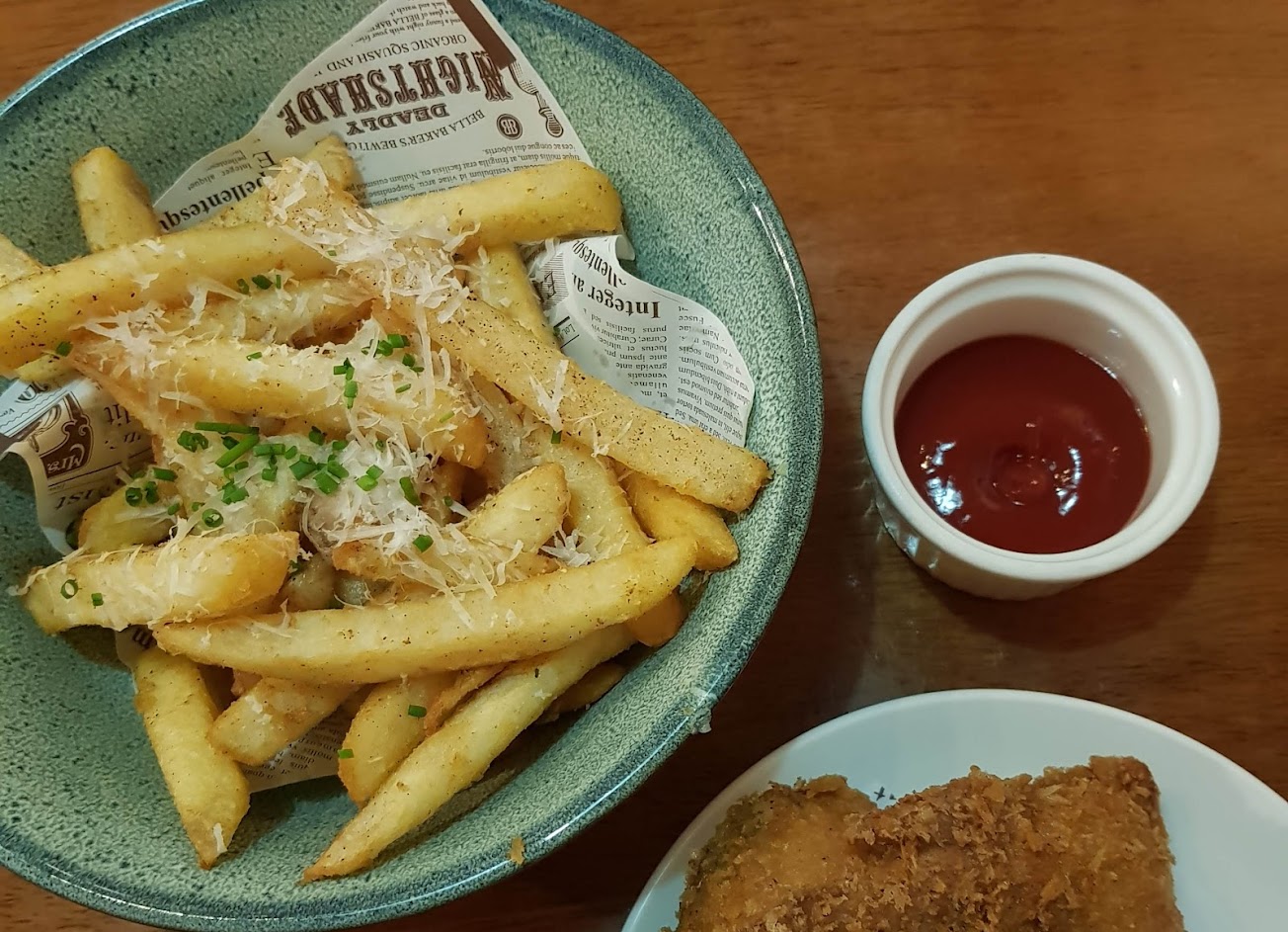 在這裡吃了炒菇沙拉、鴨雜義大利麵和炸薯條,味道都很不錯,氣氛也好,是適合輕鬆聚餐的餐館。