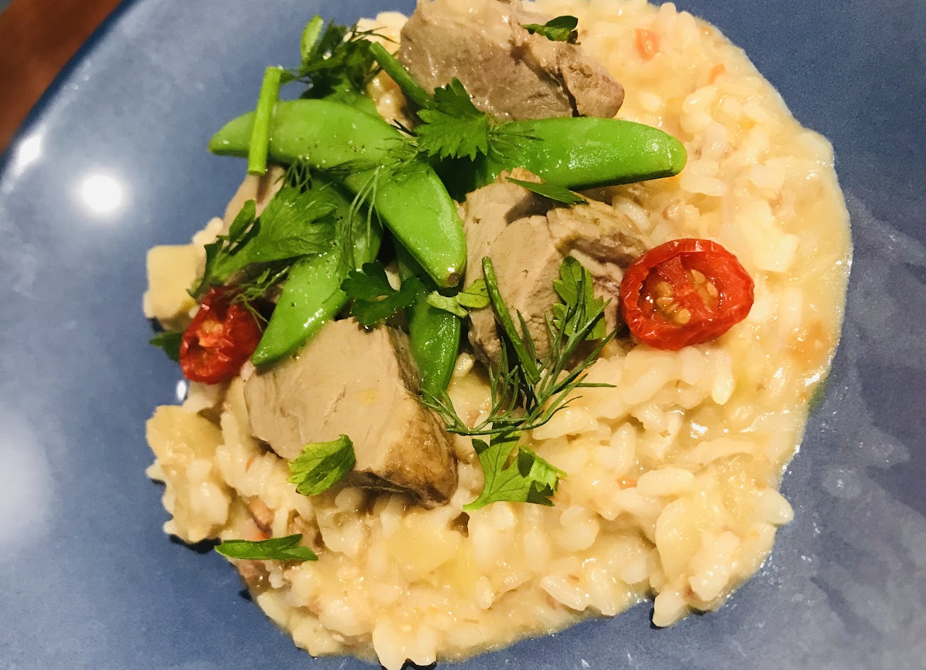朝鮮薊羊肉燉飯:之前吃朝鮮薊是川燙配奶油吃,沒有吃過直接加入料理裡面的。飯吃起來味道偏酸(不確定怎麼調味的),但是在可以接受的範圍,朝鮮薊吃起來軟軟的口感,和之前用川燙手法吃的不一樣,味道跟飯的調味一樣酸酸的。羊肩的部分放入口中時,聞起來有羊味但是不騷,吃起來非常好吃,煮得剛剛好。