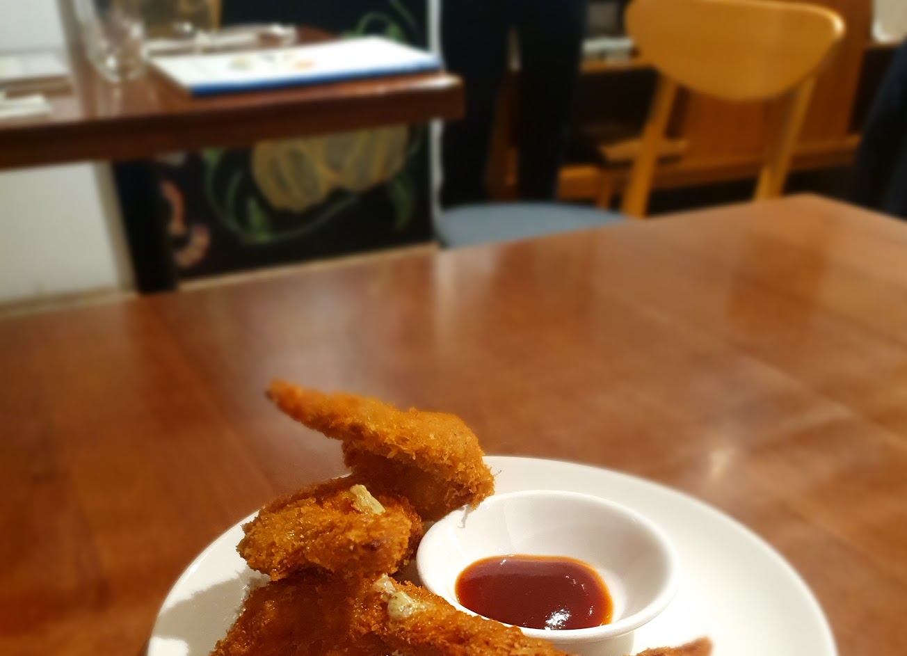 ?酥炸雞翅:裡頭的醬汁有點兒特別卻調和的很好,好吃。