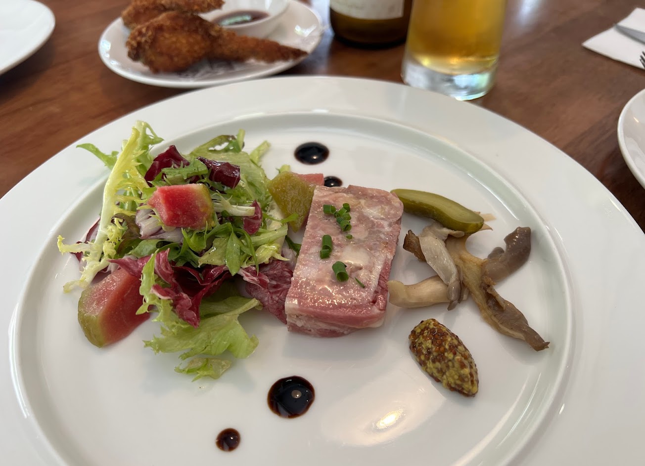 鄉村冷肉派,風味接近火腿培根之類的醃肉,然後口味輕一些,肉感緊實一點。