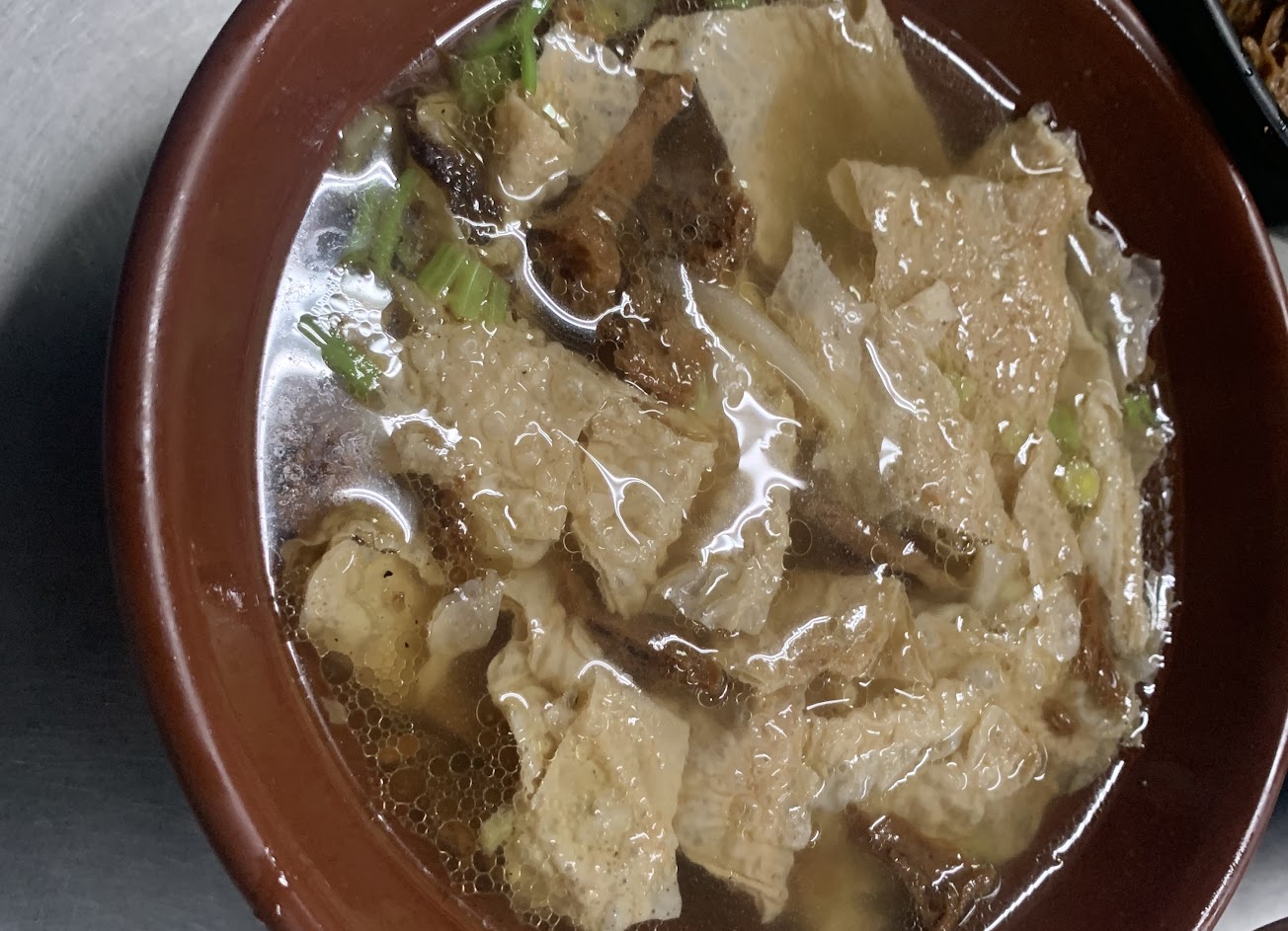 便宜好吃,生意很好,大概九點就沒有豆腸菜捲了,豆皮湯清淡好喝。